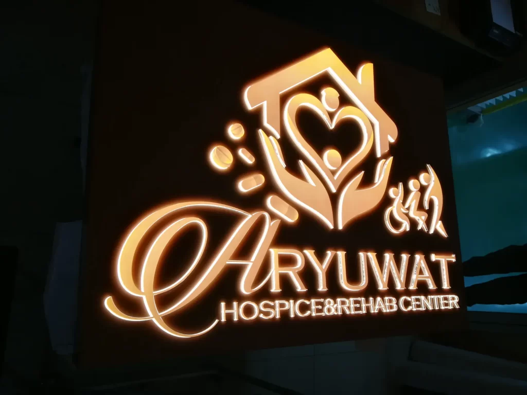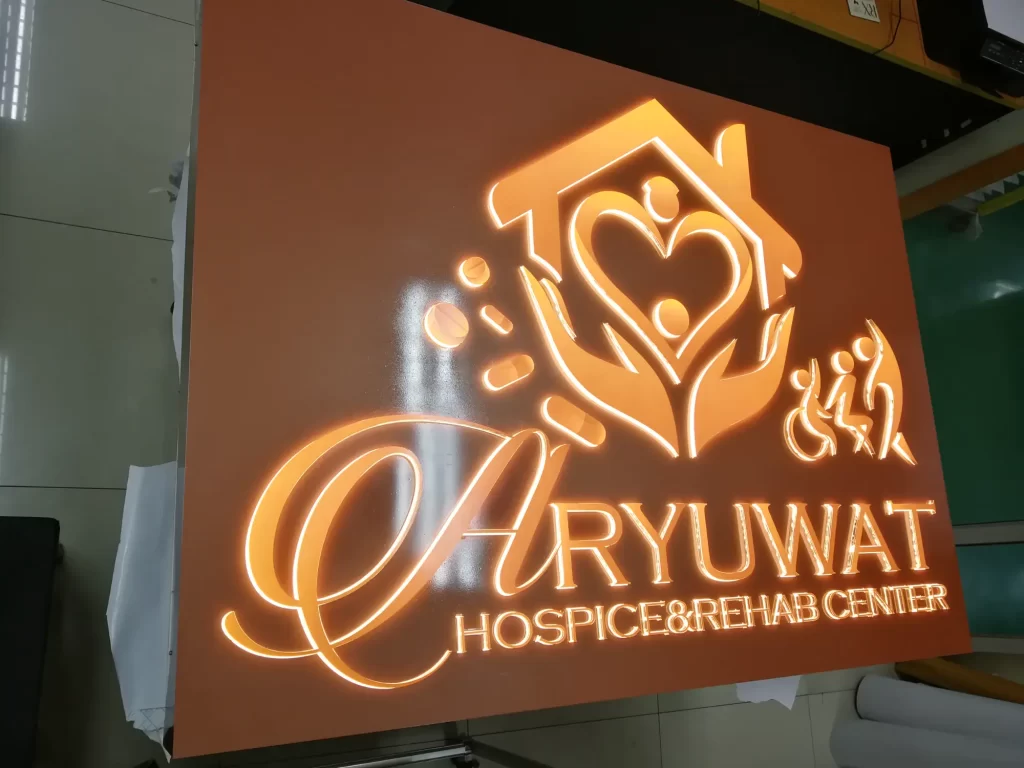 แสงส่องออกจากด้านหลังของตัวอักษร เพิ่มความหรูหรา และสร้างความแตกต่างให้กับสถานพยาบาลในเมือง