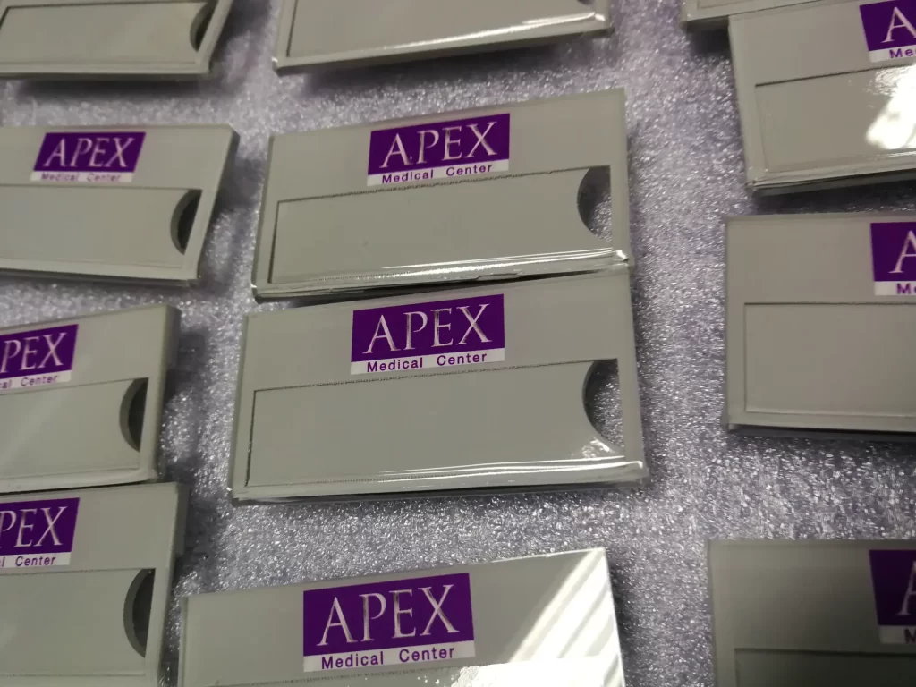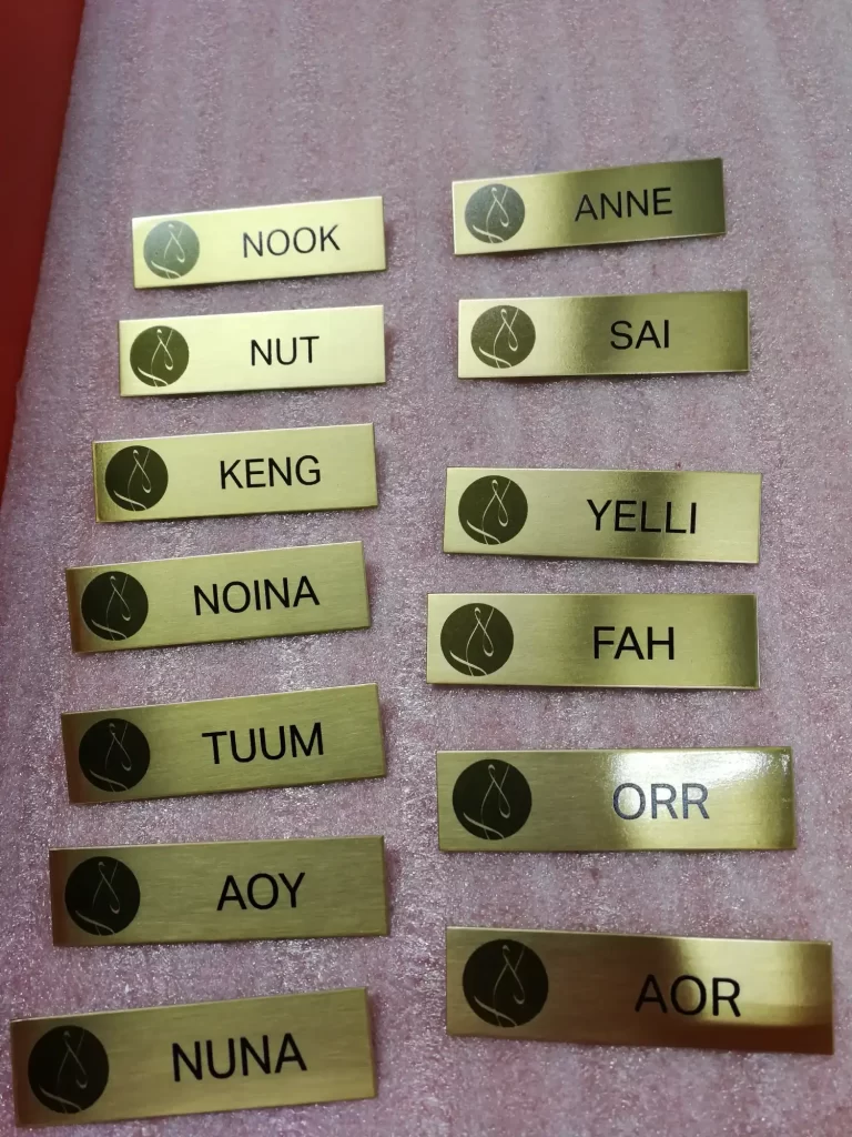 ป้ายขนาดเล็กที่พนักงานติดบริเวณหน้าอกเสื้อ เพื่อแสดงชื่อ ตำแหน่ง หรือแผนกของตนเอง ช่วยให้ผู้มาติดต่อสามารถเรียกชื่อได้ถูกต้อง และสร้างภาพลักษณ์ที่เป็นมืออาชีพ เหมาะกับโรงแรม ร้านอาหาร โรงพยาบาล บริษัท หรือหน่วยงานราชการ