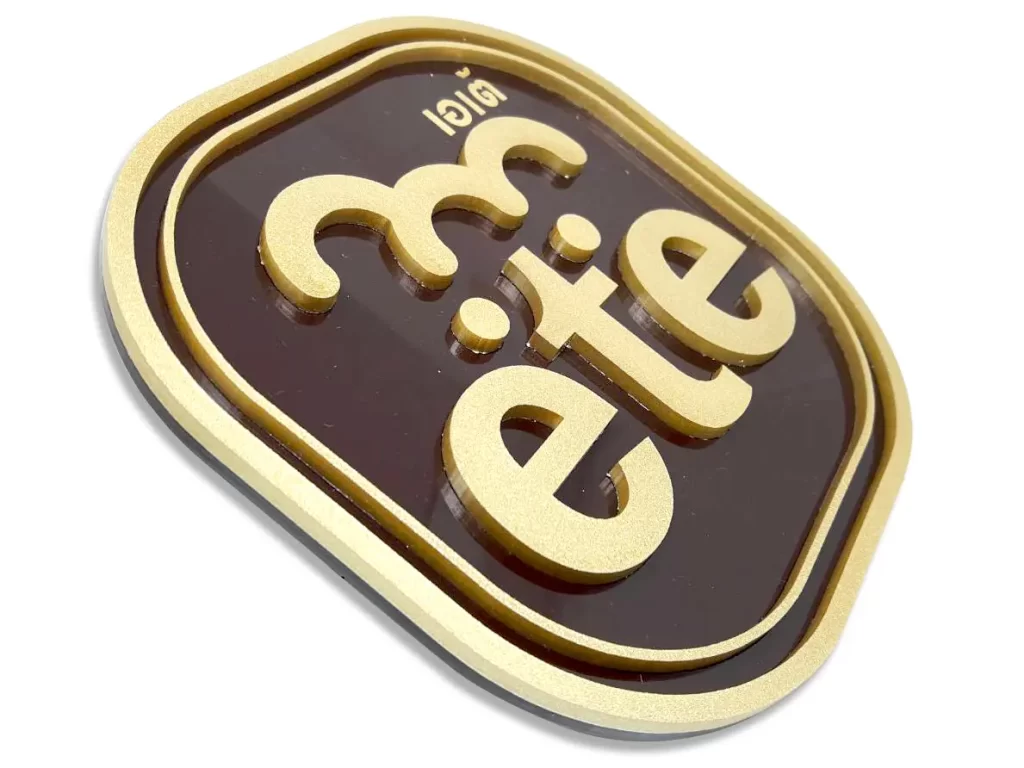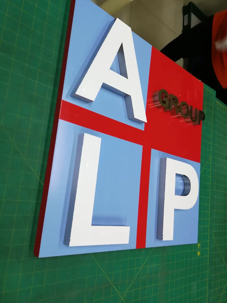ทำจากอะคริลิก พ่นสี หรือตัดเลเซอร์ นิยมใช้ติดผนังในห้องประชุม โถงต้อนรับ หรือพื้นที่แสดงแบรนด์ภายใน