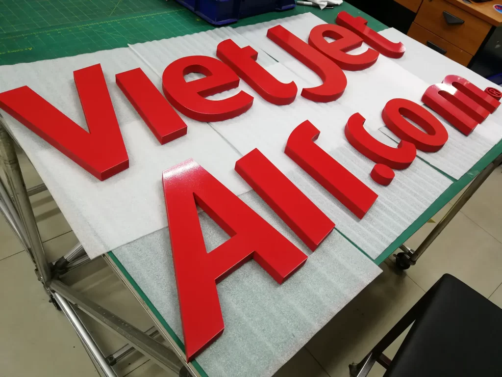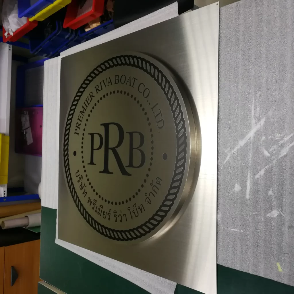 ติดตั้งบนผนังอาคารหรือพื้น อลูมิเนียมคอมโพสิท (Aluminum Composite Panel) ด้วยวัสดุอย่างสแตนเลส อะคริลิก หรือโลหะตัด CNC ดูหรูหราและมืออาชีพ