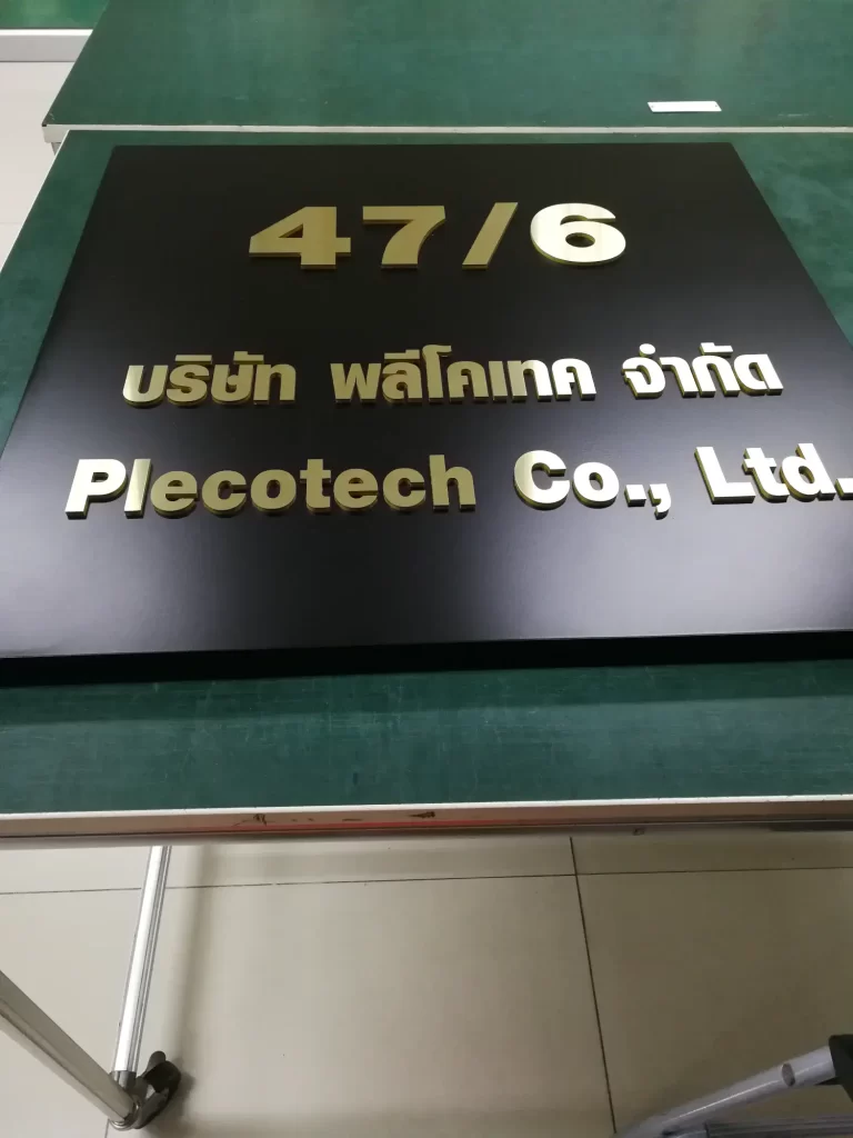 ผลิตและ ติดตั้งป้ายตัวอักษรสแตนเลสเงา และสแตนเลสพ่นสีส้ม และ เขียว โดยต้องผ่านการอบรมระบบ safety ของทางโรงงานก่อนเริ่มงาน