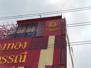- ป้ายอาคาร (Building Sign) ขนาดใหญ่ด้านบนอาคาร ใช้สีแดงทองอันเป็นเอกลักษณ์ของธุรกิจทองคำ พร้อมตัวอักษรนูนขนาดใหญ่ มองเห็นได้ชัดเจนแม้ในระยะไกล