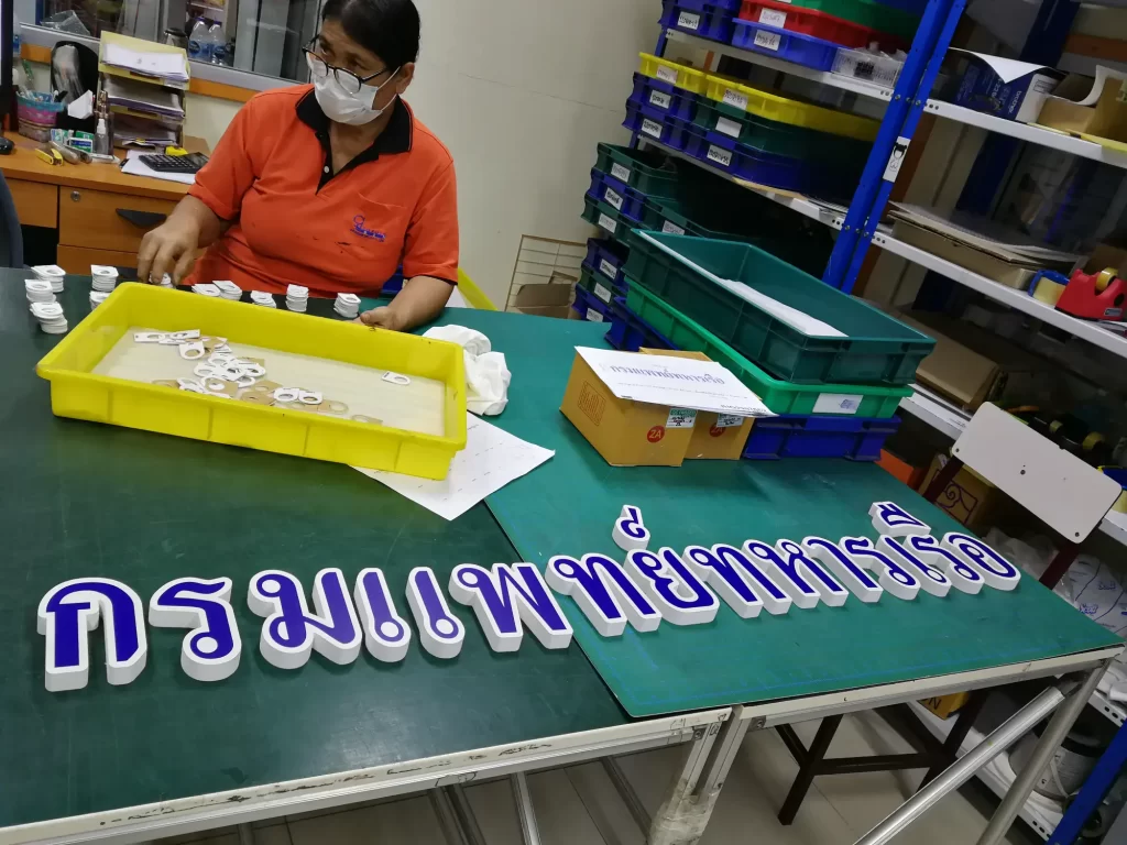 เราดำเนินการผลิตและติดตั้งป้ายอาคารด้วยกระบวนการที่มีมาตรฐานระดับอุตสาหกรรม โดยมีขั้นตอนดังนี้