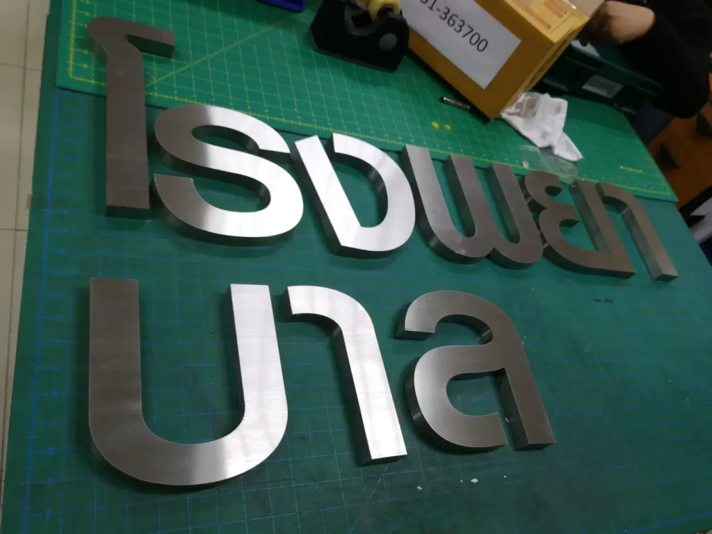 ผลิต และ ติดตั้ง ตัวอักษรสแตนเลสยกขอบไฟออกหน้า