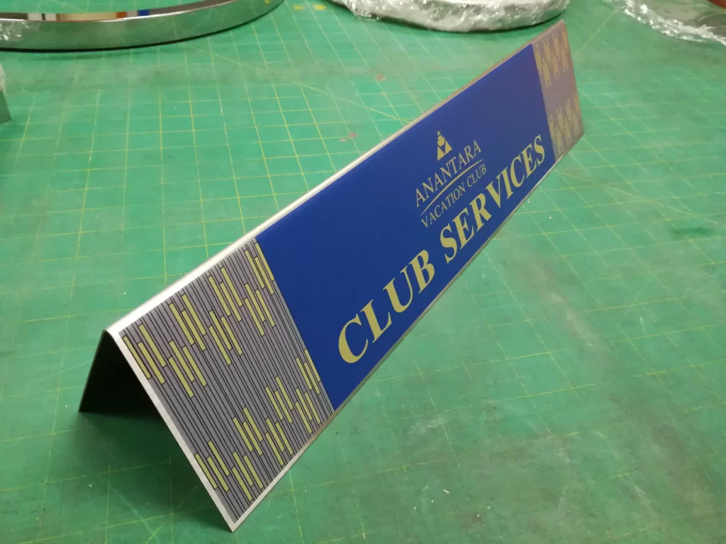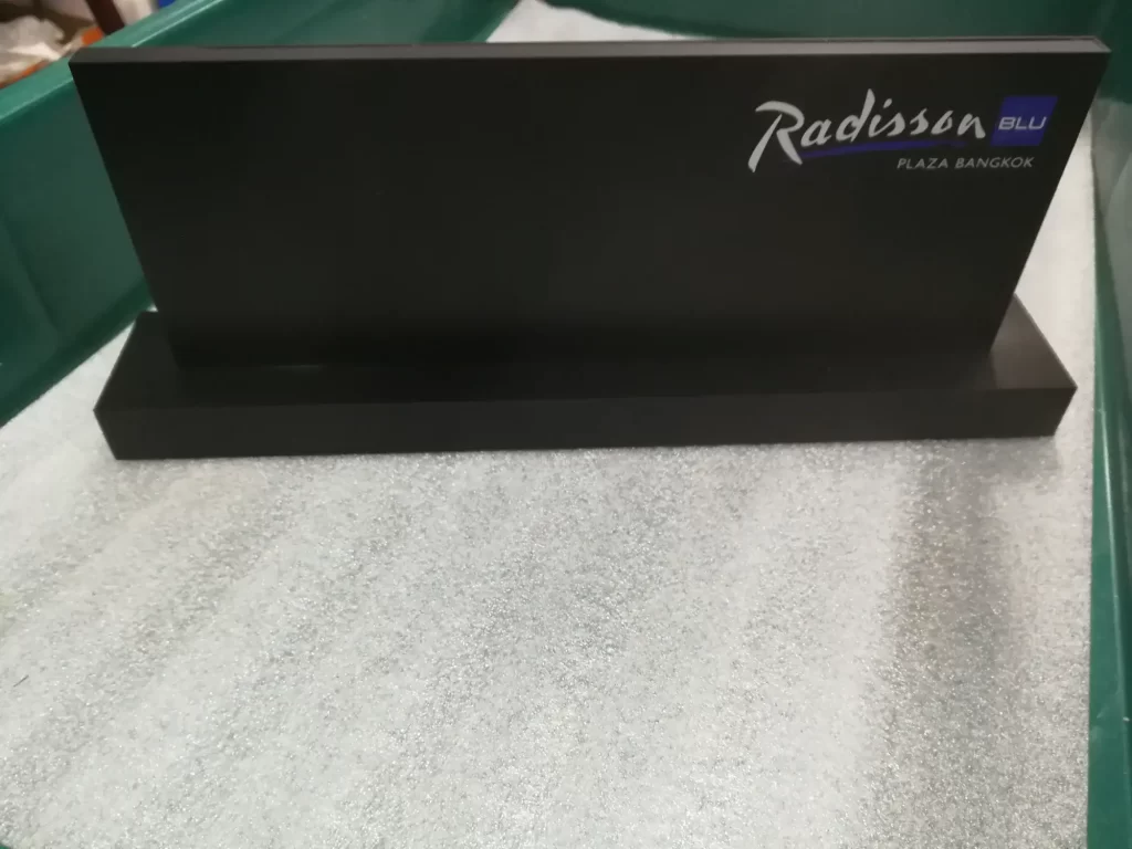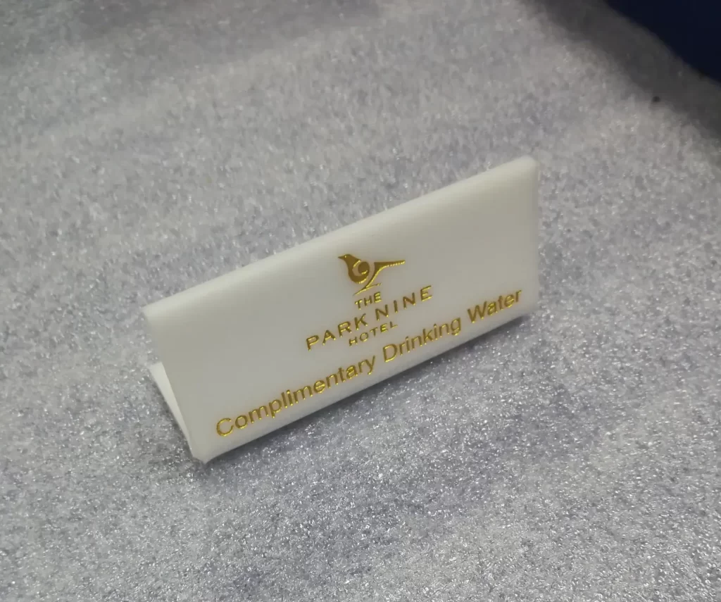 ป้ายขนาดเล็กที่วางบนโต๊ะเคาน์เตอร์ แผนกต้อนรับ ห้องอาหาร หรือห้องประชุมในโรงแรม ใช้สำหรับแสดงข้อความสำคัญ เช่น “Welcome”, “Reserved”, “Check-in Here”, หรือ “Wi-Fi Password” โดยออกแบบให้ดูเรียบหรู สะอาดตา และสอดคล้องกับบรรยากาศของโรงแรม