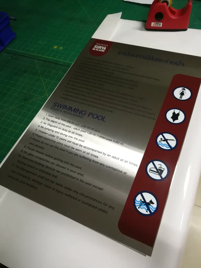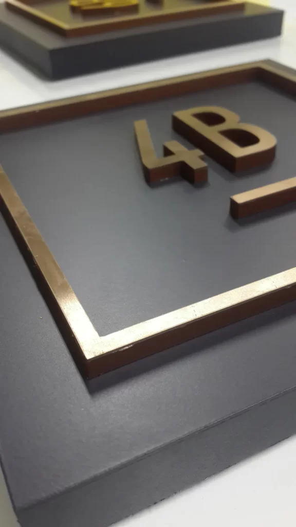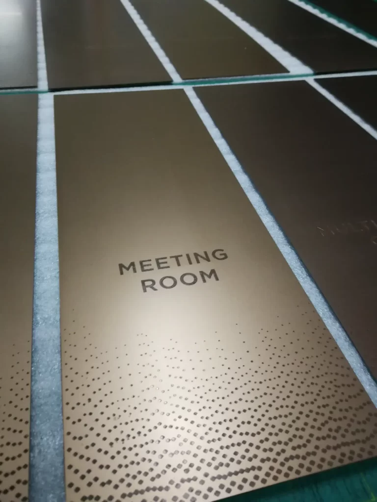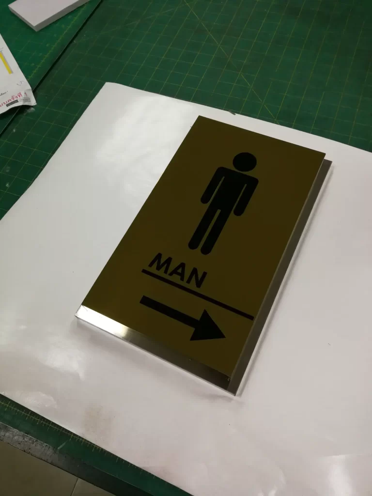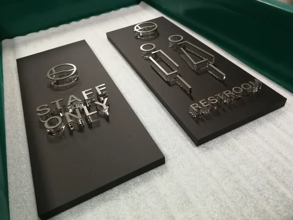 : พื้นผิวเรียบ ใสหรือสีขุ่นได้ ดูทันสมัย เหมาะกับป้ายชื่อห้อง ป้ายทางเดิน หรือป้ายแสดงโลโก้