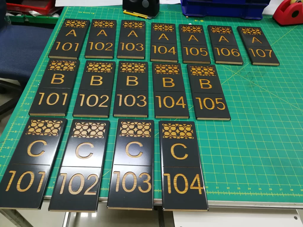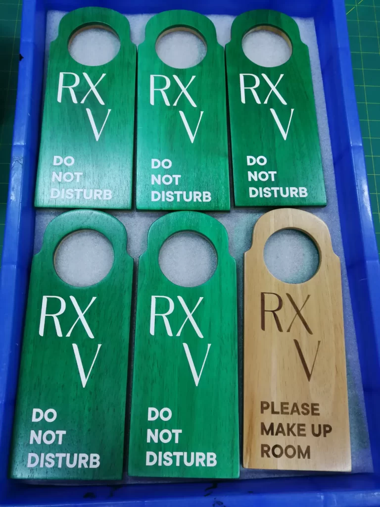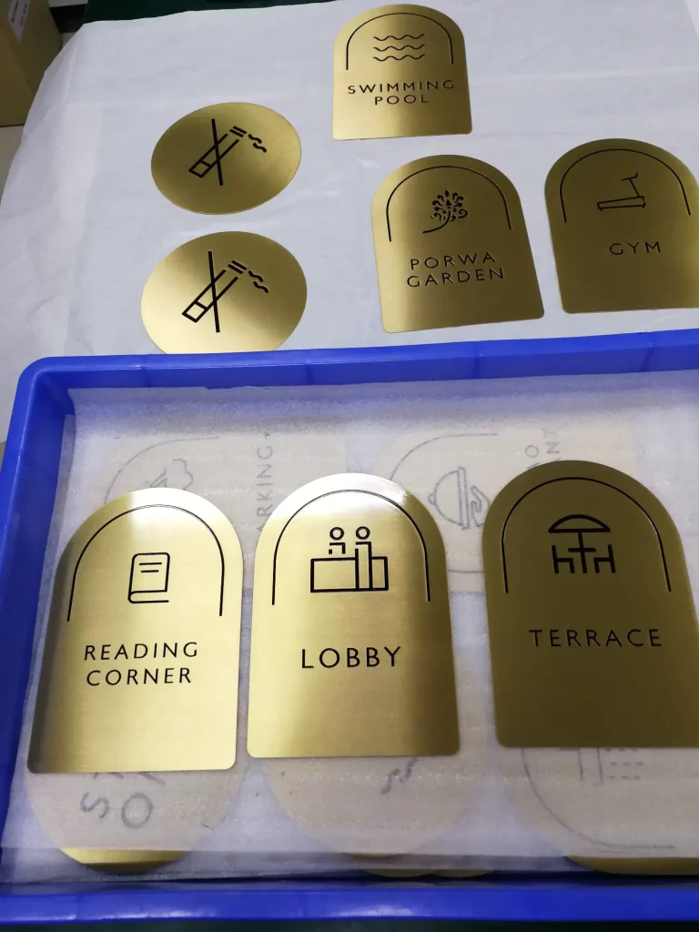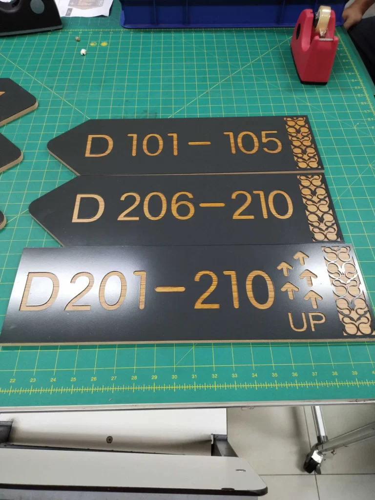 ป้ายที่ติดบริเวณหน้าห้องพัก ห้องประชุม หรือห้องบริการต่าง ๆ ภายในโรงแรม เช่น “ห้องพัก 201”, “ห้องประชุมมรกต”, หรือ “Business Center” เพื่อช่วยในการระบุตำแหน่งห้องอย่างชัดเจน เพิ่มความสะดวกให้ผู้เข้าพักและผู้มาติดต่อ
