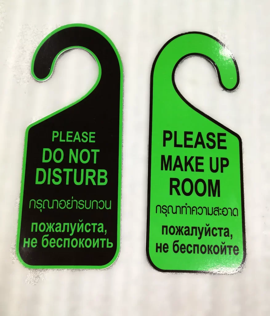 ป้ายที่ออกแบบให้แขวนกับลูกบิดหรือมือจับประตู โดยไม่ต้องติดตั้งถาวร มักใช้ในโรงแรม สำนักงาน หรือห้องประชุม เพื่อแสดงสถานะของห้องหรือข้อความแจ้ง เช่น “ห้ามรบกวน”, “กรุณาทำความสะอาด”, หรือ “กำลังประชุม”