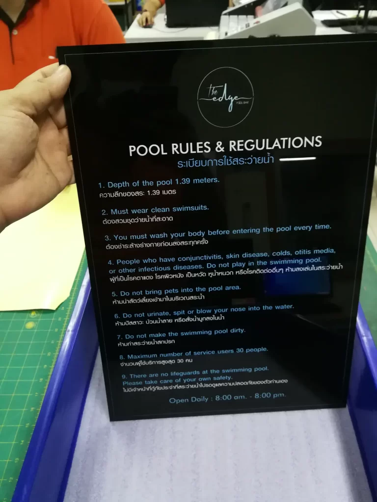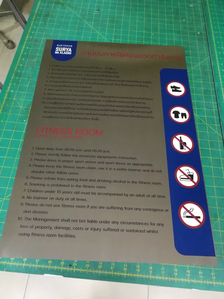 ป้ายแสดงกฎระเบียบหรือข้อควรปฏิบัติที่สามารถวางตั้งพื้นได้โดยไม่ต้องเจาะหรือติดกับผนัง เหมาะสำหรับใช้ในโรงแรม สระว่ายน้ำ โรงเรียน ฟิตเนส หรือพื้นที่สาธารณะ เพื่อให้ผู้ใช้งานเห็นชัดเจนก่อนเข้าสู่พื้นที่นั้น