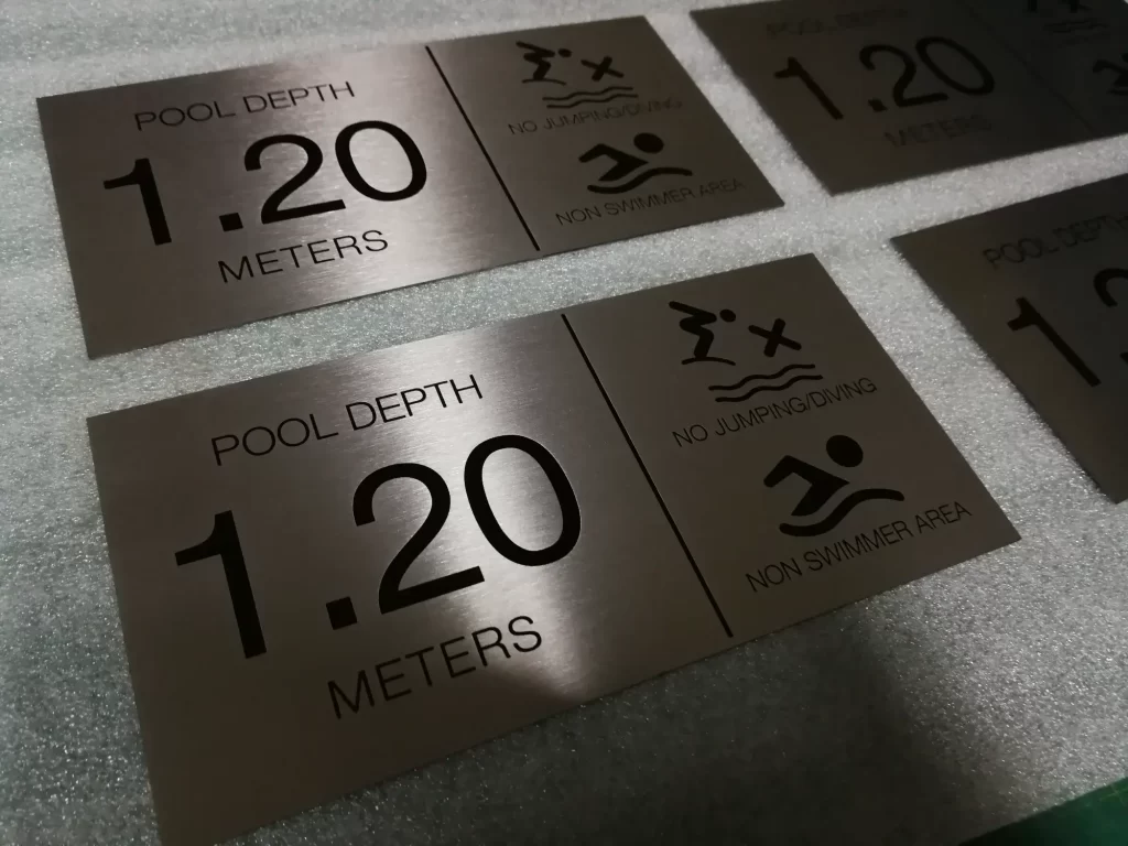 ป้ายประเภทนี้ใช้แสดงค่าคุณภาพน้ำที่สำคัญ ได้แก่ ค่าคลอรีน (Chlorine), ค่า pH, และ ค่าเกลือ (Salt Level) เพื่อให้ผู้ใช้งานรับทราบข้อมูลด้านสุขอนามัยและความปลอดภัยของน้ำในสระ โดยนิยมติดตั้งใกล้ทางเข้าสระหรือจุดที่เห็นชัด