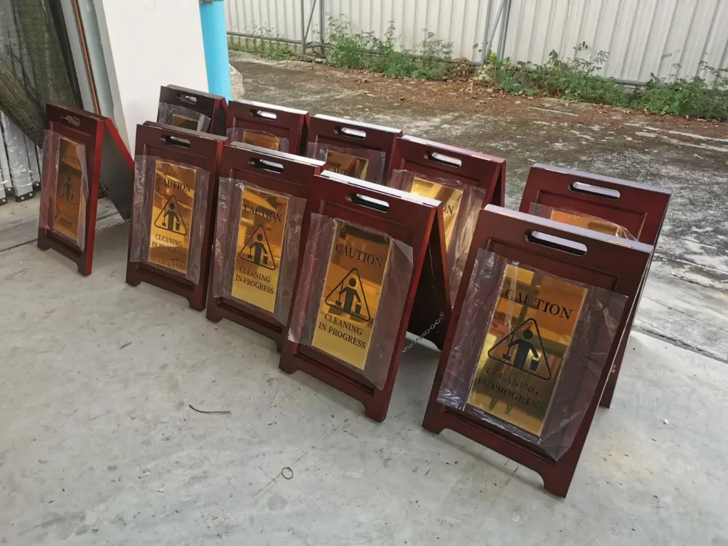 ป้ายที่ใช้แจ้งข้อควรระวังหรือเตือนภัยในพื้นที่ต่าง ๆ ของโรงแรม เช่น “พื้นเปียก”, “ห้ามสูบบุหรี่”, “กล้องวงจรปิด”, หรือ “พื้นที่เฉพาะเจ้าหน้าที่” ป้ายประเภทนี้มีบทบาทในการดูแลความปลอดภัยทั้งต่อแขกและพนักงาน