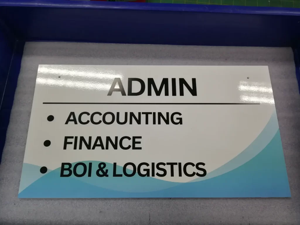 ผลิตและติดตั้ง ป้ายตัวอักษรชื่อบริษัท คำขวัญ ชื่อแผนก และ directory ให้ทางบริษัท เพื่อเป็นเอกลักษณ์และเป็นสีสันให้บริษัท
