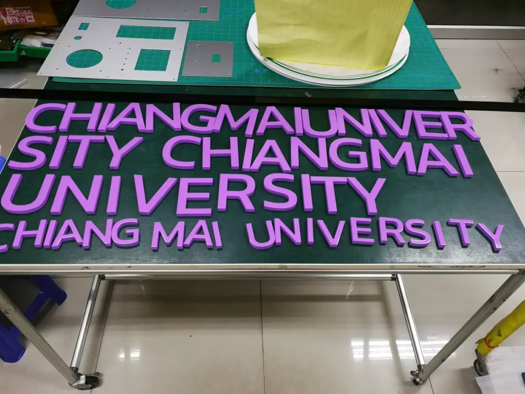 ผลิต และ ติดตั้ง ป้ายตัวอักษรโลหะยกขอบ ทั้งแบบมีไฟและไม่มีไฟ รวมไปถึงโลโก้ติดรั้วรอบๆมหาวิทยาลัย