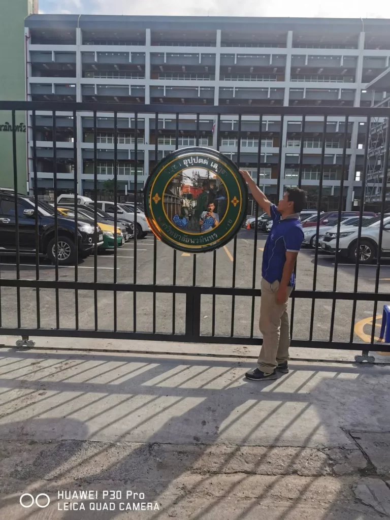 แสดงชื่อโรงเรียน มหาวิทยาลัย หรือพิพิธภัณฑ์ พร้อมตราสัญลักษณ์ ติดตั้งบริเวณทางเข้าหลักเพื่อสร้างความประทับใจแรกพบ