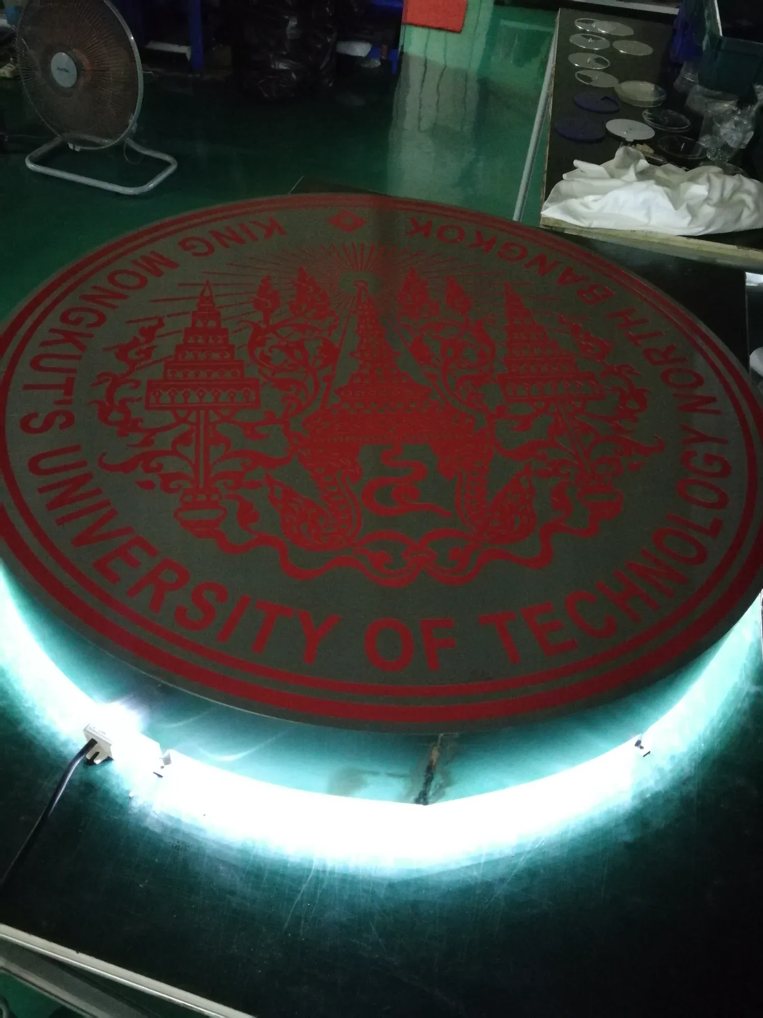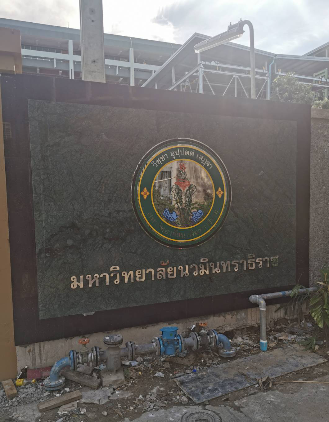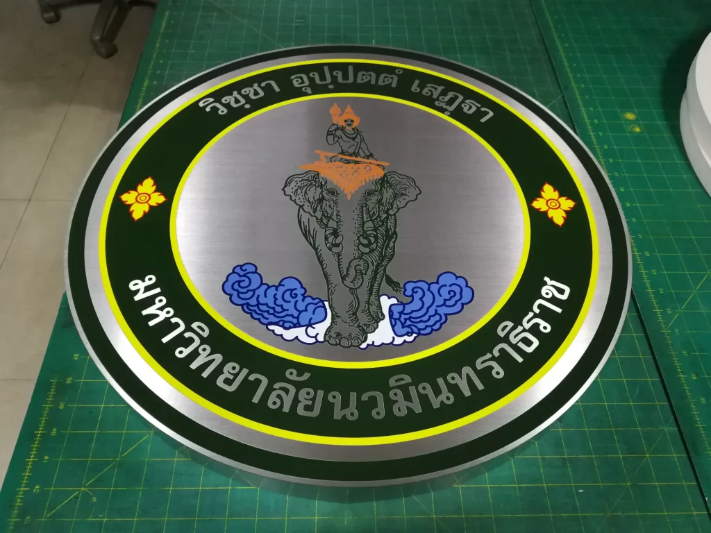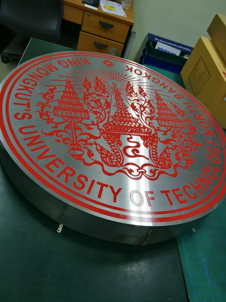 ผลิต และ ติดตั้งป้ายตราสัญลักษณ์โลหะกัดกรดด้านหน้าประตูทางเข้ามหาวิทยาลัย รวมถึงที่รั้วรอบๆ พร้อมทำโลโก้กล่องไฟออกหน้าติดด้านบนอาคาร