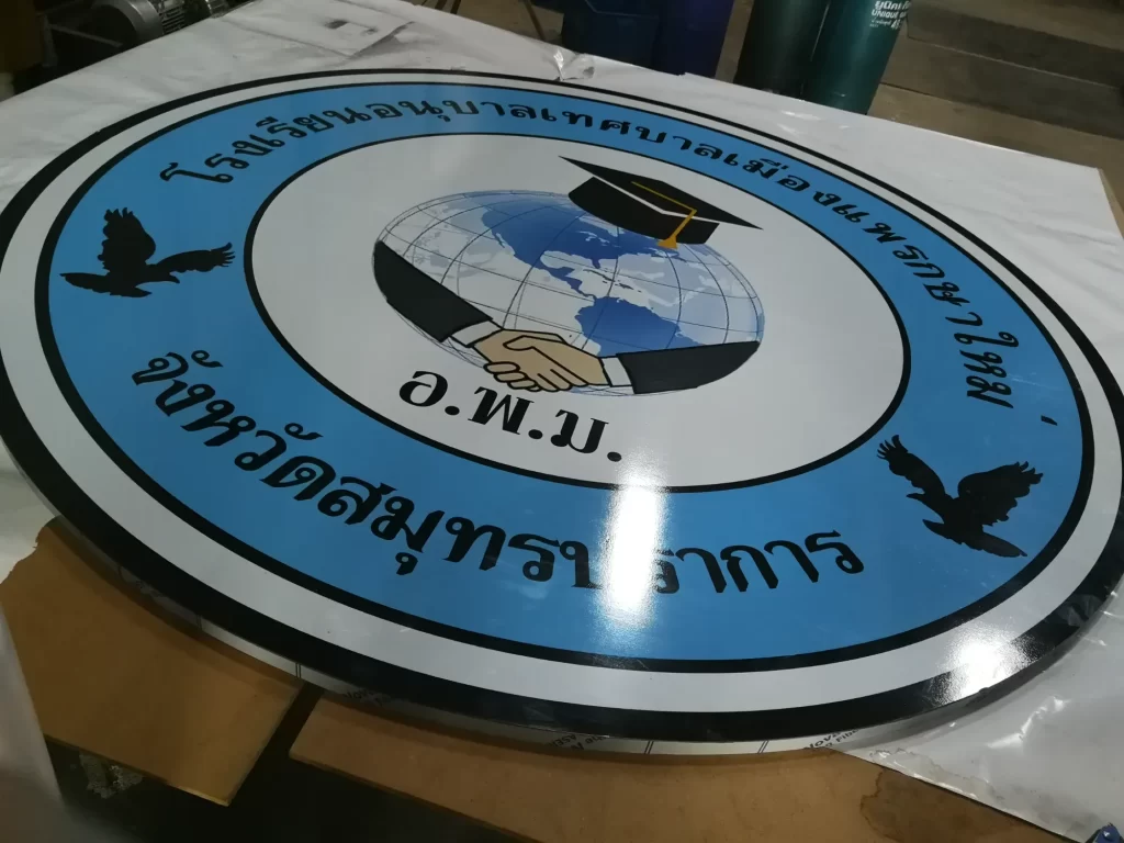 ป้ายตราสัญลักษณ์ (Emblem Sign) คือสื่อที่มีความสำคัญอย่างยิ่งในการแสดงตัวตนของหน่วยงานราชการ โรงเรียน และสถานศึกษาต่าง ๆ โดยมักใช้โลโก้ราชการ ตราสัญลักษณ์ประจำสถาบัน หรือคำขวัญ เพื่อแสดงถึงเกียรติภูมิ ความเป็นทางการ และความน่าเชื่อถือขององค์กรนั้น ๆ ไม่ว่าจะเป็นสำนักงานราชการ โรงเรียนประถม มัธยม หรือมหาวิทยาลัย การมีป้ายตราสัญลักษณ์ที่ถูกออกแบบอย่างประณีตจะช่วยยกระดับภาพลักษณ์ให้กับหน่วยงาน ทั้งยังเป็นจุดสังเกตหลักของผู้มาติดต่อและบุคคลทั่วไป