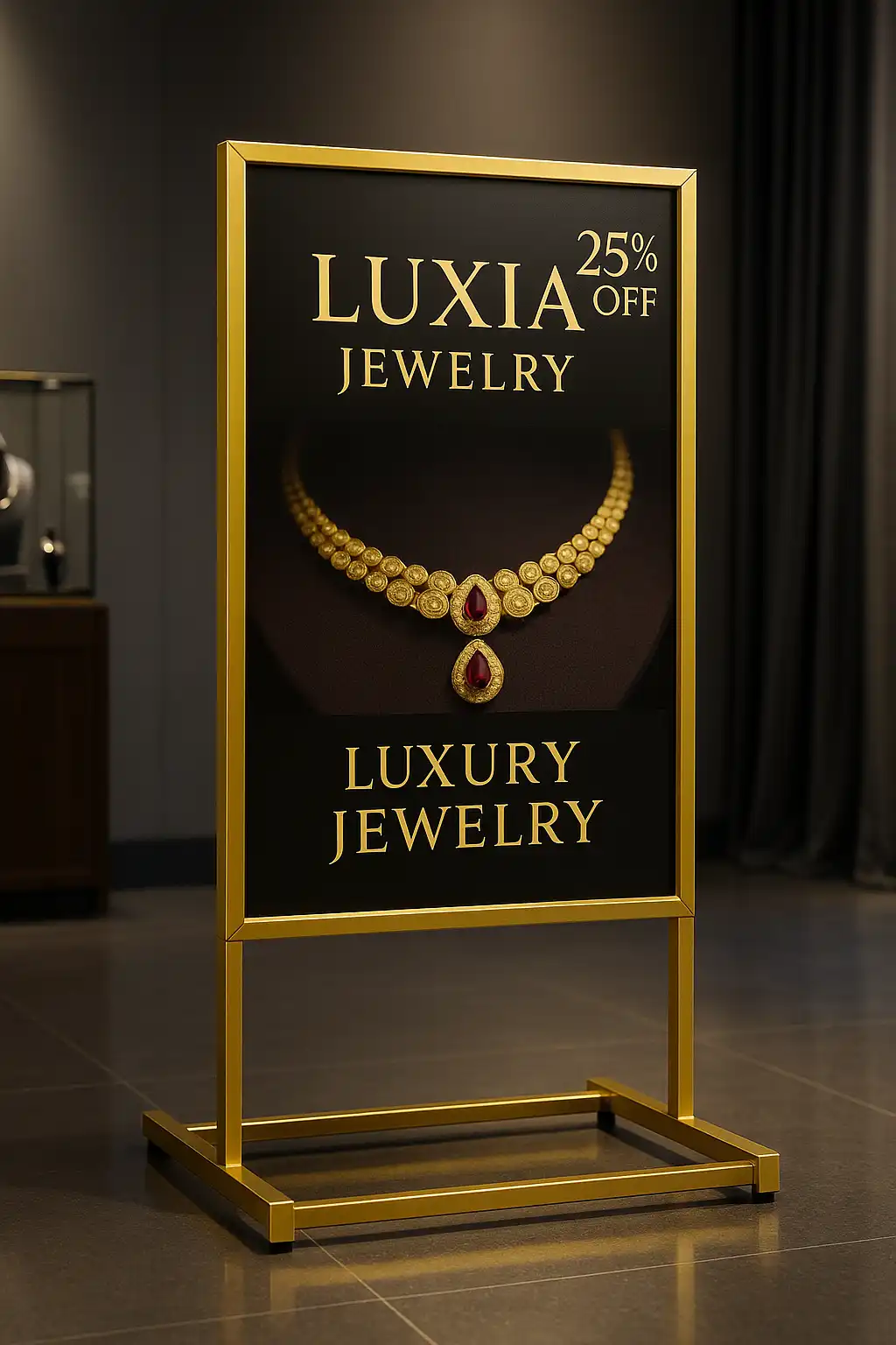 ป้ายตั้งพื้นของเราให้การแสดงข้อมูลที่ชัดเจนและเป็นมืออาชีพ พร้อมความทนทานยอดเยี่ยมและตัวเลือกปรับแต่งได้หลากหลาย