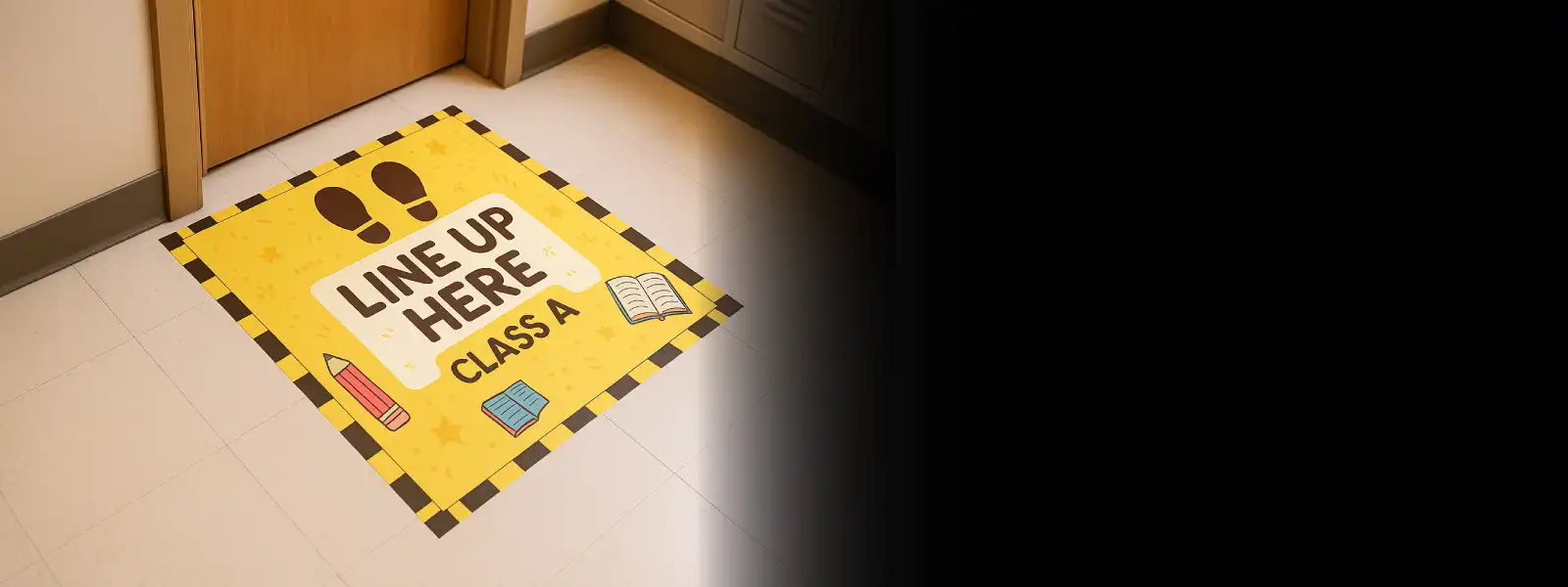 ออกแบบมาให้ทนทานต่อการเหยียบเดิน สติ๊กเกอร์ติดพื้นพิมพ์พร้อมเคลือบกันลื่น และลามิเนตเพื่อป้องกันรอยขีดข่วน ความชื้น และแสง UV เหมาะสำหรับพื้นเรียบภายในอาคาร หรือทางเดินภายนอกเมื่อเตรียมพื้นผิวอย่างเหมาะสม