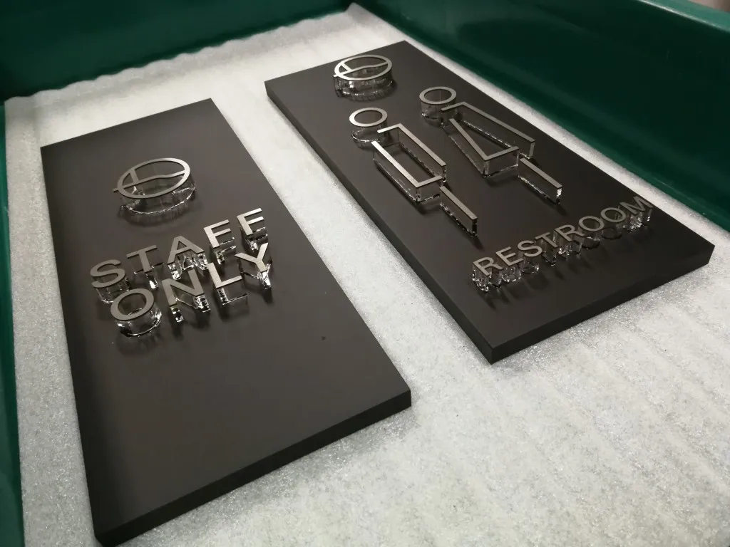 ออกแบบป้ายชื่อห้องและป้ายห้องน้ำให้สะท้อนเอกลักษณ์แบรนด์ของคุณได้อย่างสมบูรณ์แบบ เลือกวัสดุ สี ระบบไฟ และรูปแบบการติดตั้งได้หลากหลายตามความต้องการ
