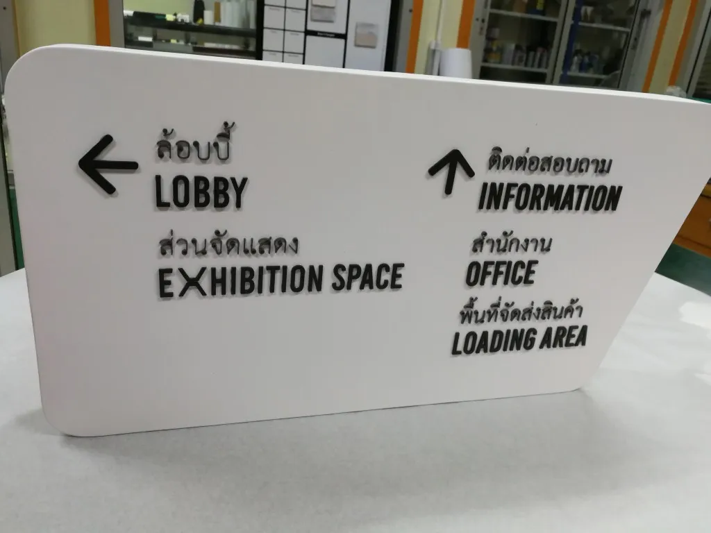 ออกแบบมาเพื่อความชัดเจนและทนทาน ป้ายบอกทางใช้ตัวอักษรอ่านง่ายและสัญลักษณ์มาตรฐาน เพื่อช่วยนำทางอย่างมีประสิทธิภาพ เหมาะสำหรับใช้งานทั้งภายในและภายนอก ติดตั้งได้ทั้งแบบติดผนัง ตั้งพื้น หรือแขวนเพดาน