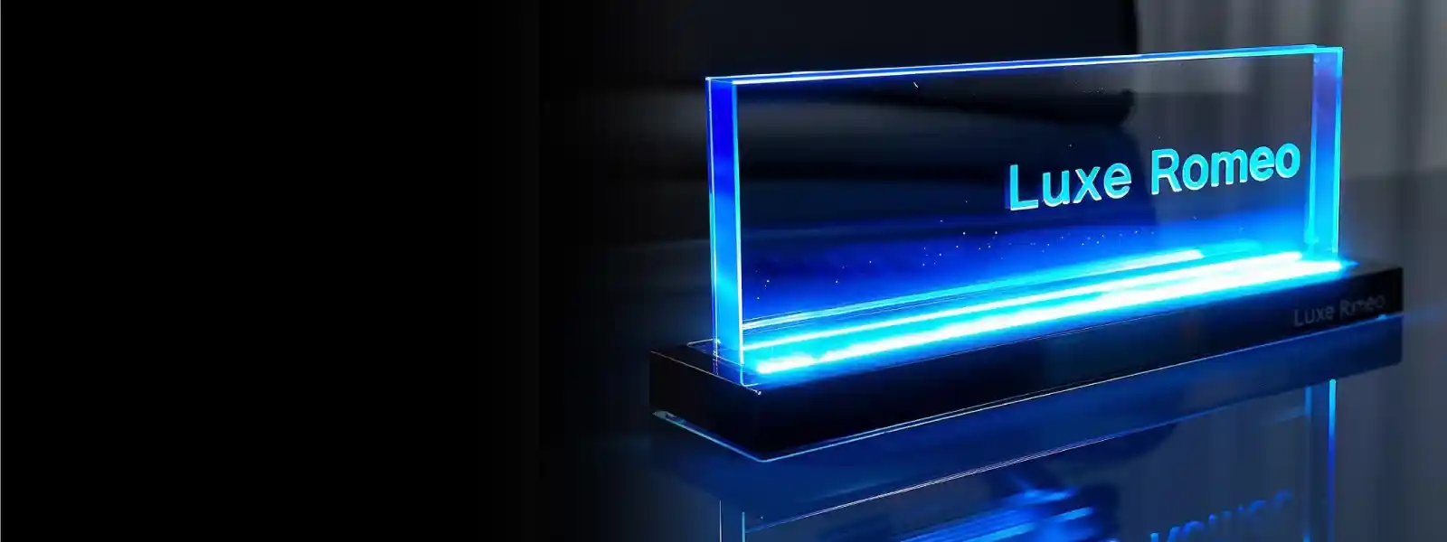 ทำจากแผ่นอะคริลิกใสที่ส่องสว่างด้วยแถบ LED ตามขอบ สร้างเอฟเฟกต์เรืองแสงที่เรียบหรูรอบเนื้อหาที่แกะสลักหรือพิมพ์ เหมาะสำหรับการใช้งานในร่มอย่างล็อบบี้ เคาน์เตอร์ หรือป้ายชี้ทางที่ต้องการความหรูหราที่นุ่มนวลและการมองเห็น