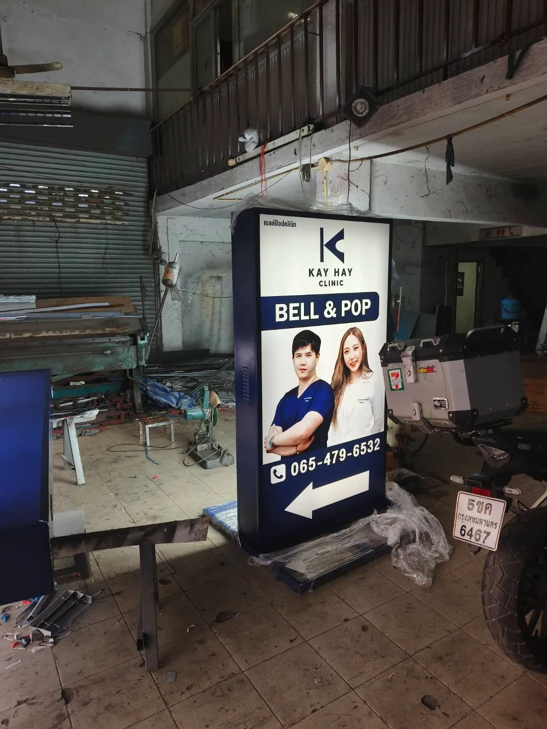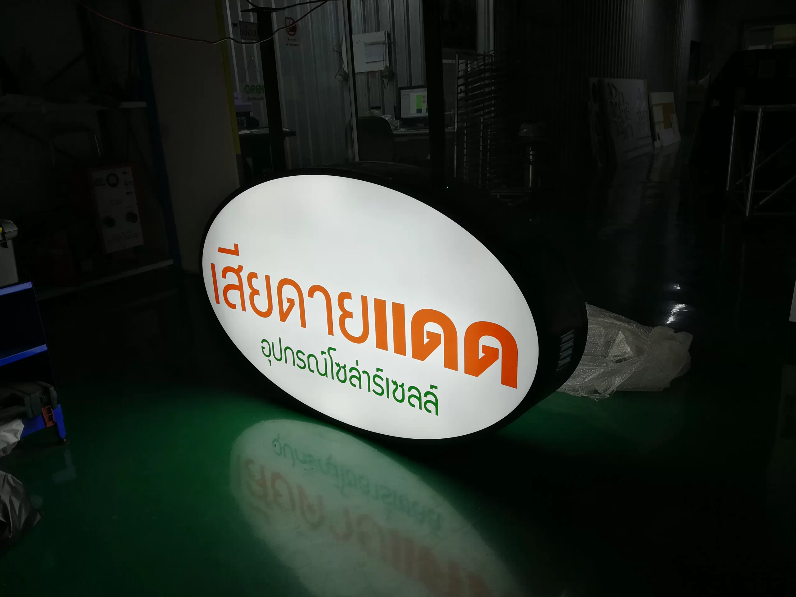 สร้างด้วยกรอบแข็งแรงและแผงหน้าแบบโปร่งแสง ป้ายกล่องไฟใช้แสงไฟ LED หรือฟลูออเรสเซนต์ภายในเพื่อให้ภาพที่สว่างและสะดุดตา เหมาะสำหรับดีไซน์ด้านเดียวและสองด้าน และมีให้เลือกในรูปแบบติดผนัง แขวน หรือตั้งพื้น