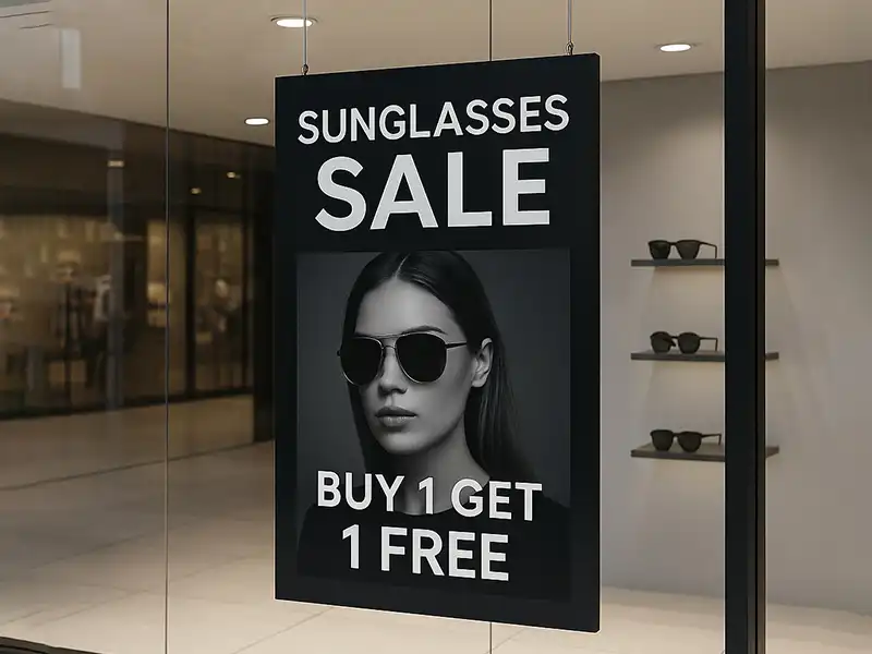 ออกแบบสำหรับการติดตั้งที่ง่ายดายบนพื้นผิวกระจกโดยใช้ที่ดูดแก้ว สายเหล็ก หรือชุดแขวน เหมาะสำหรับหน้าร้านหรือแผงกระจกภายใน พร้อมตัวเลือกกราฟิกสองด้านเพื่อดึงดูดความสนใจจากทั้งสองทิศทาง