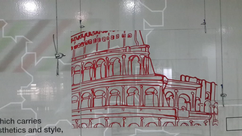 การติดตั้งแบบแขวนด้วยสายทนทานเพื่อให้ดูเหมือนลอยอยู่