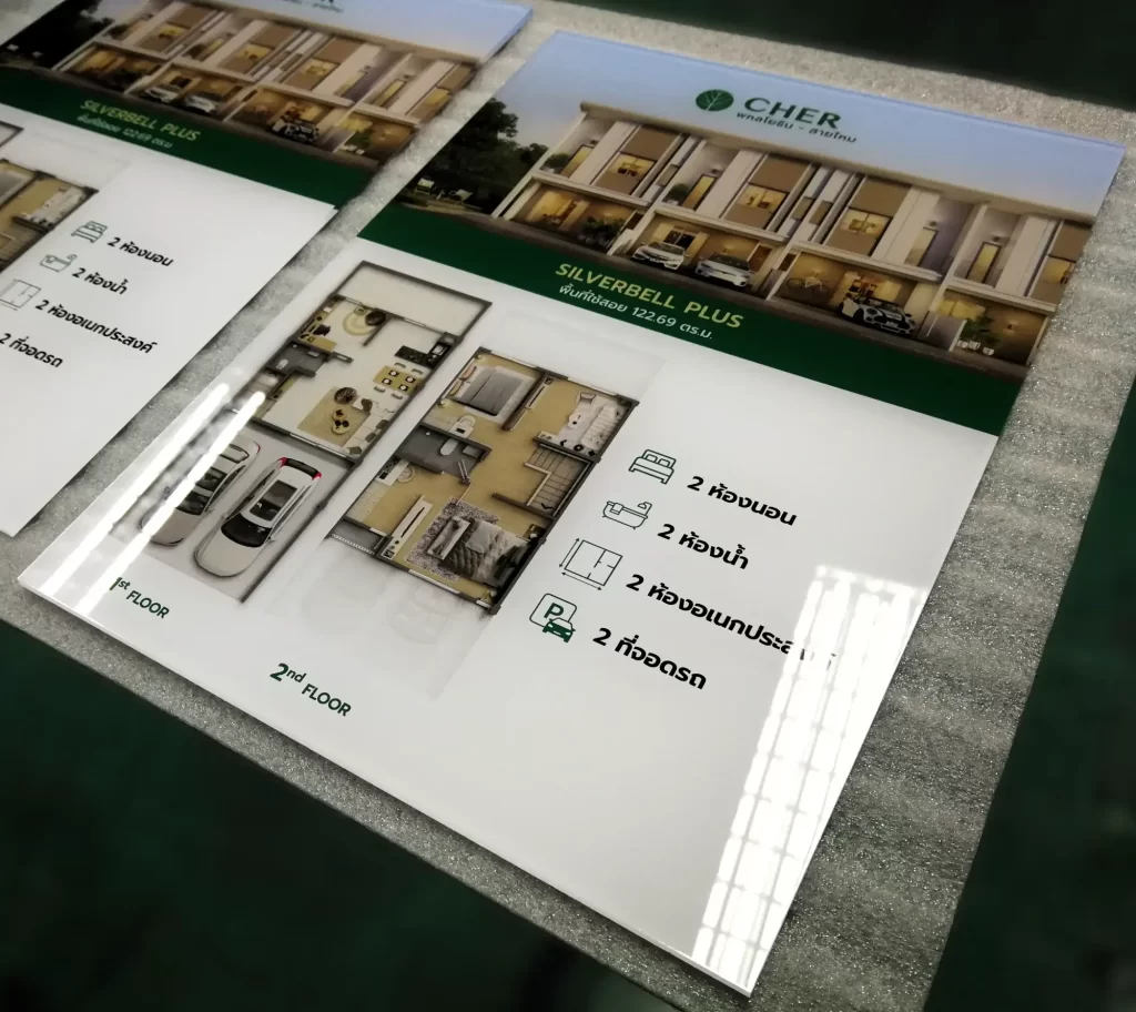 หากต้องการความทนทาน แนะนำอะคริลิกหรืออลูมิเนียมคอมโพสิท แต่ถ้าต้องการประหยัดและเปลี่ยนบ่อย ๆ แนะนำไวนิล