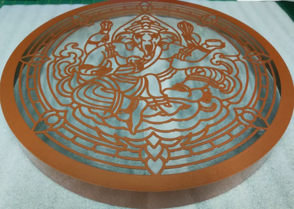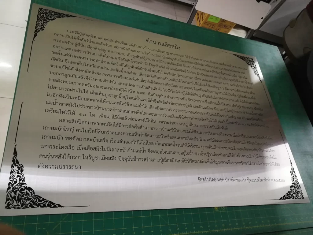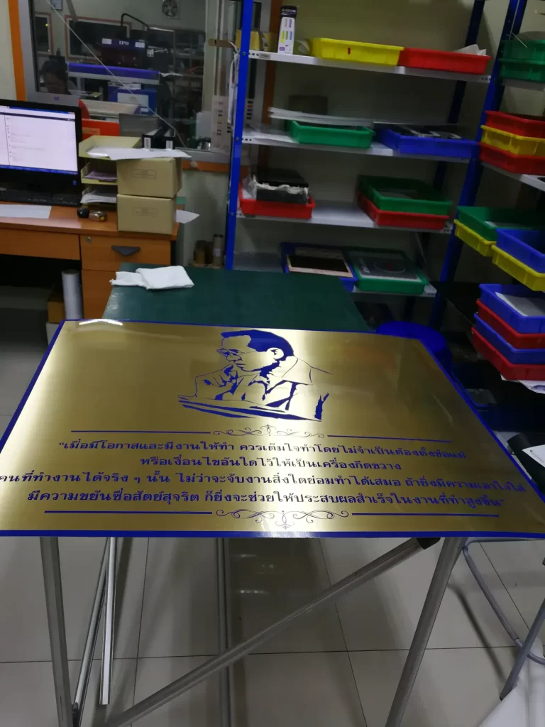 : พื้นผิวเงางาม ดูทันสมัยหรือเรียบหรูได้ ตัดเป็นรูปทรงต่าง ๆ ได้ เหมาะกับป้ายถวายรายนาม ป้ายบทสวด ป้ายคำสอน