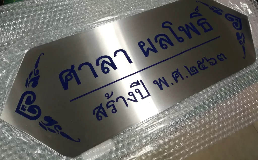 : ทนสนิม ดูสง่า หรูหรา และให้ความรู้สึกเป็นทางการ เหมาะกับป้ายหน้าศาลา ป้ายจารึก หรือป้ายถวายถาวร